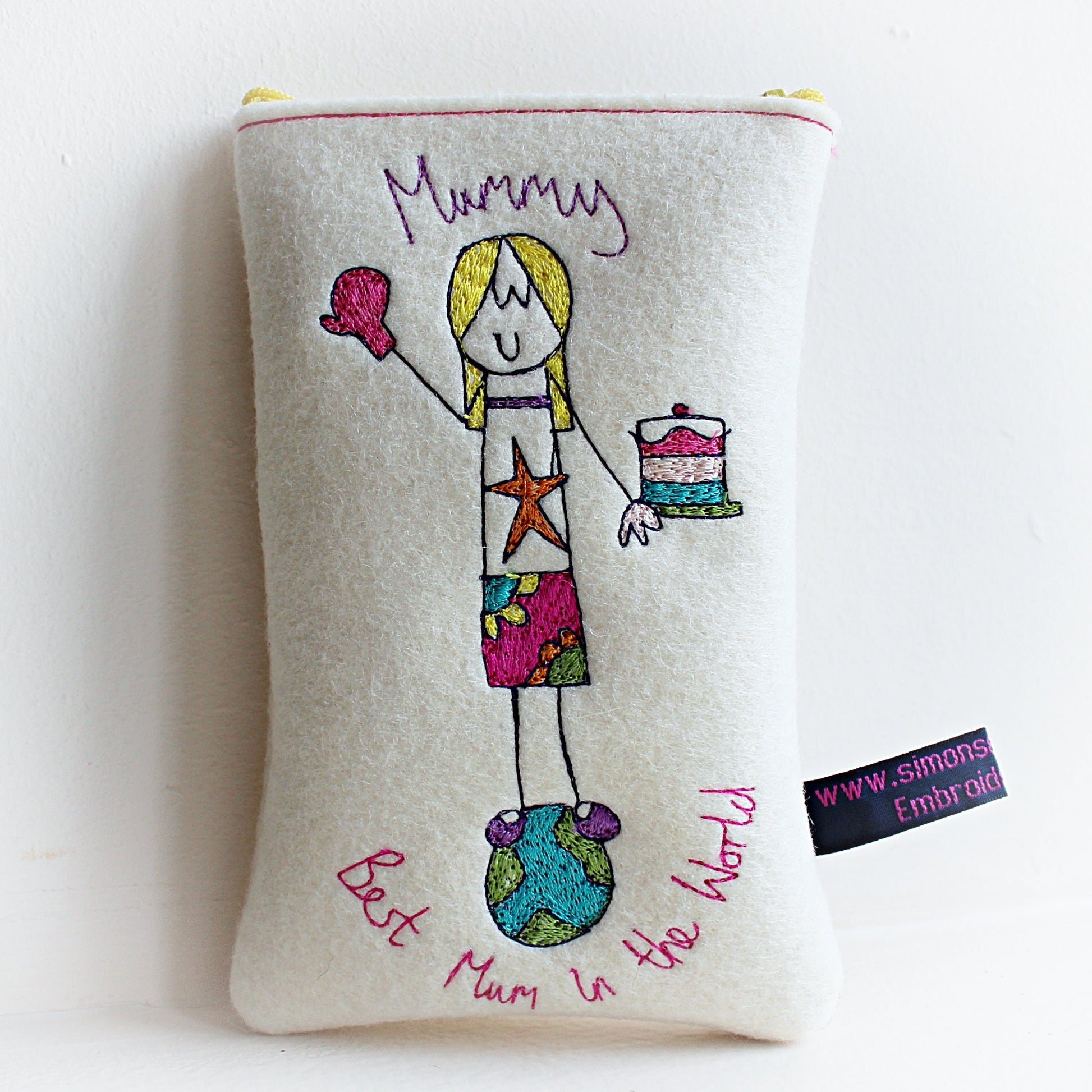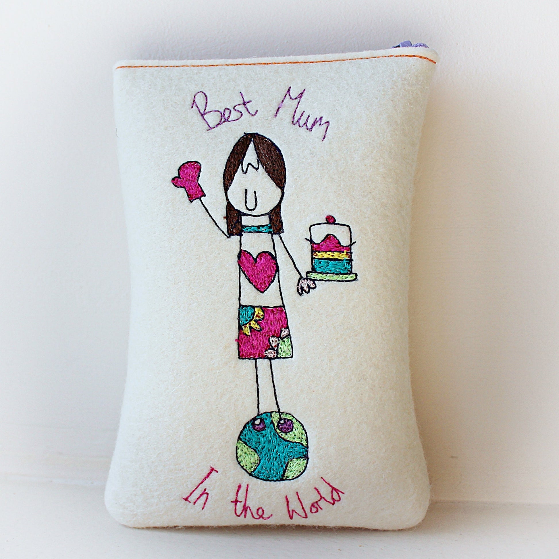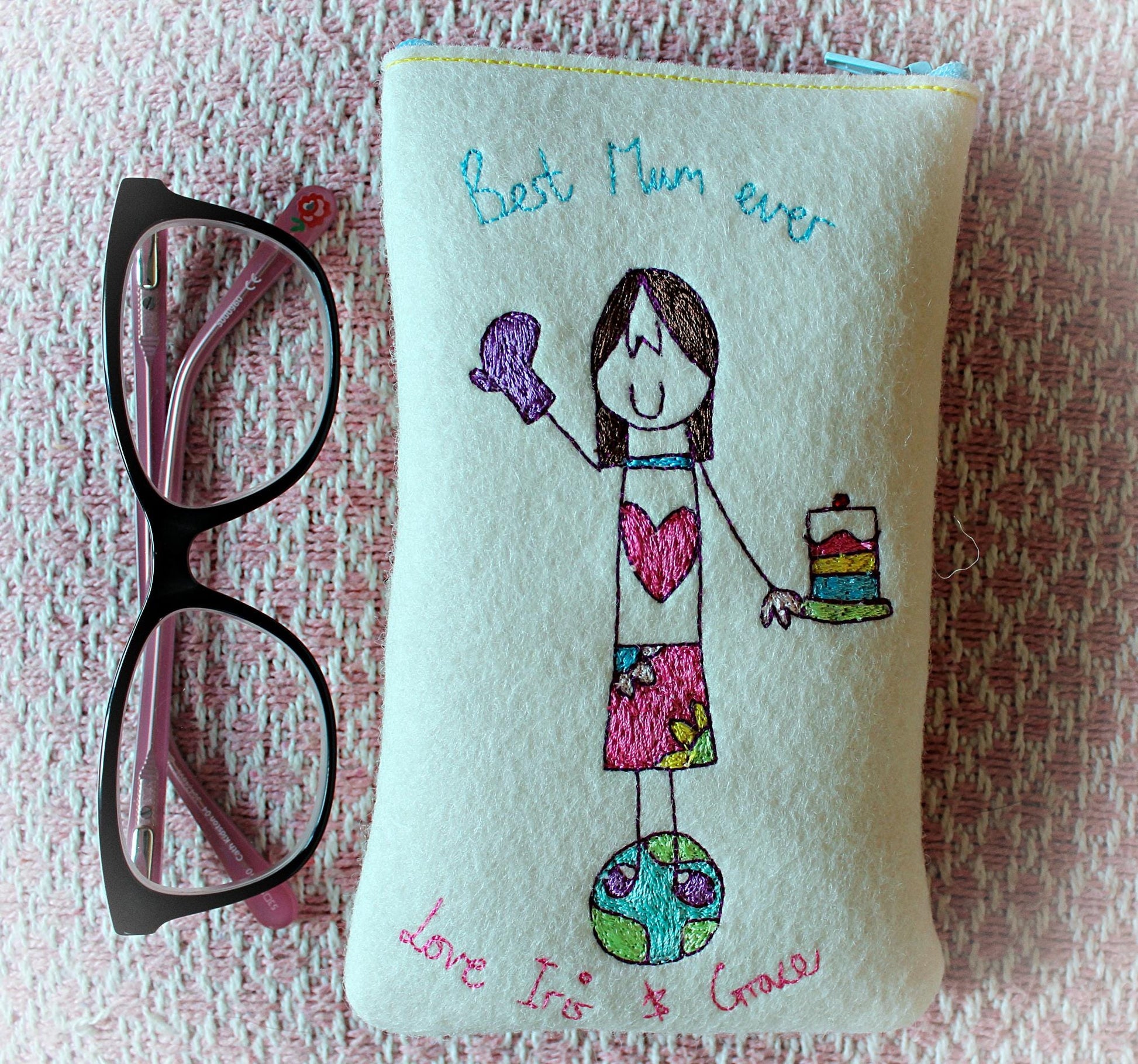 A beautiful handmade gift for mum made using free hand machine embroidery. Made with natural 3mm thick wool felt with embroidered design to front. Backing is also natural 3mm thick wool felt to help protect your specs. The glasses case has a zip to the top to keep your specs nice and secure.