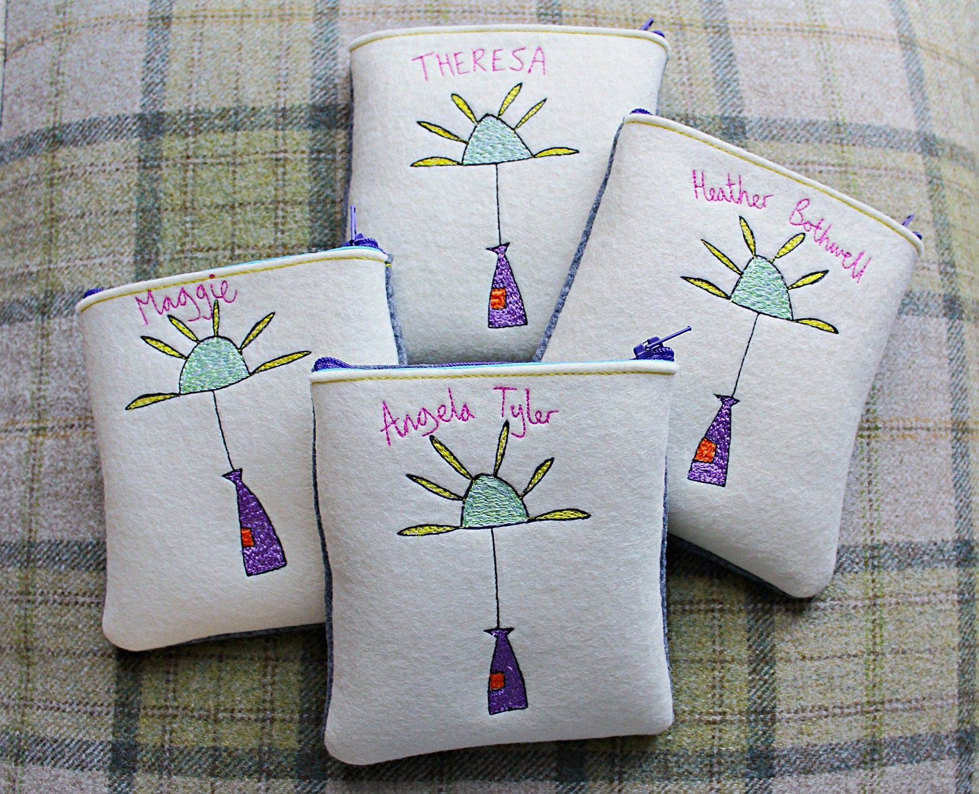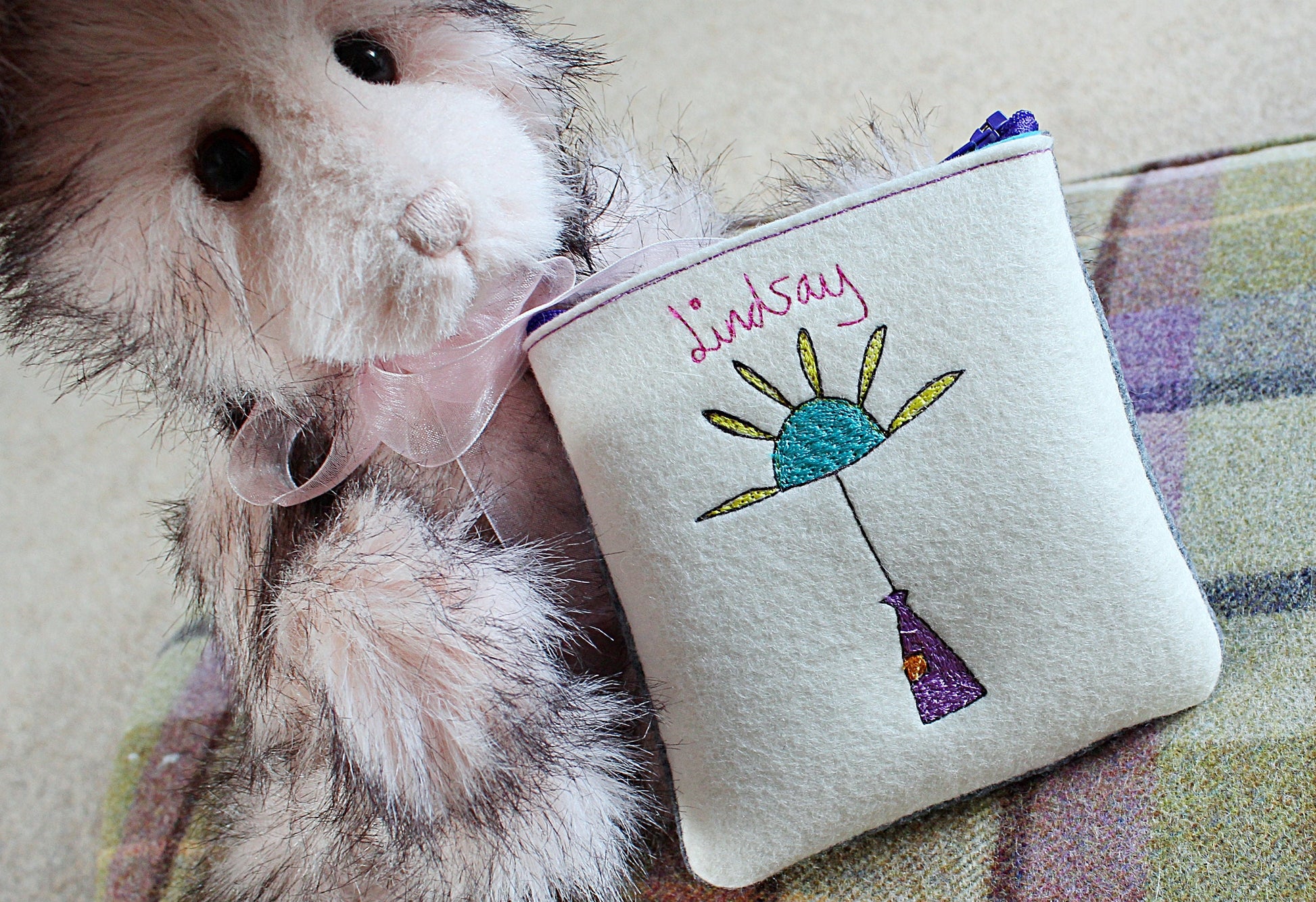 A unique birthday or christmas gift for little girls, boys (or ladies!). Each flower purse is made individually by hand using free-hand machine embroidery. The flower design is embroidered on to thick natural wool felt with a zip fastening to the top and felt material to the back. The purse measures approximately 12cm x 12cm and can fit both money, cards and even a lipstick!